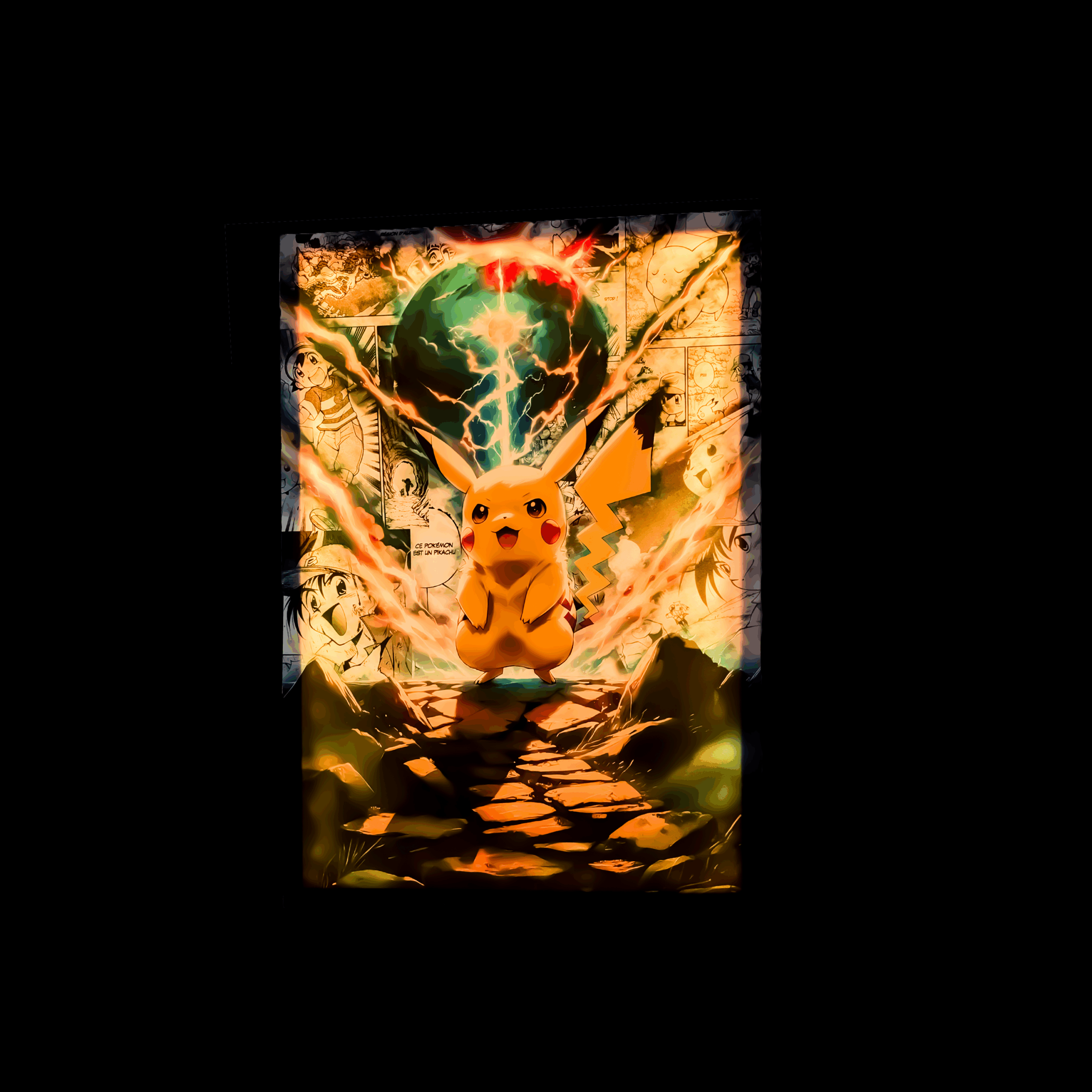Image haute définition : Pikachu dans toute sa splendeur, imprimé sur une toile de qualité supérieure pour des couleurs vibrantes et durables.