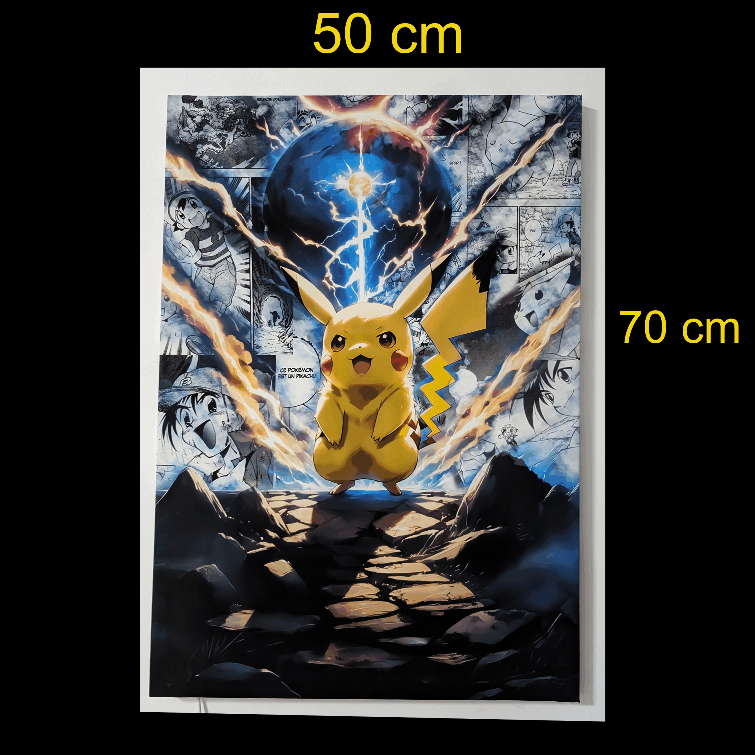 Apporte une touche d’énergie et de mignonnerie à ton intérieur avec ce tableau représentant le Pokémon électrique le plus célèbre. Avec ses dimensions généreuses de 70×50 cm, Pikachu illuminera ta pièce et deviendra le centre d’attention de tous les fans de Pokémon.